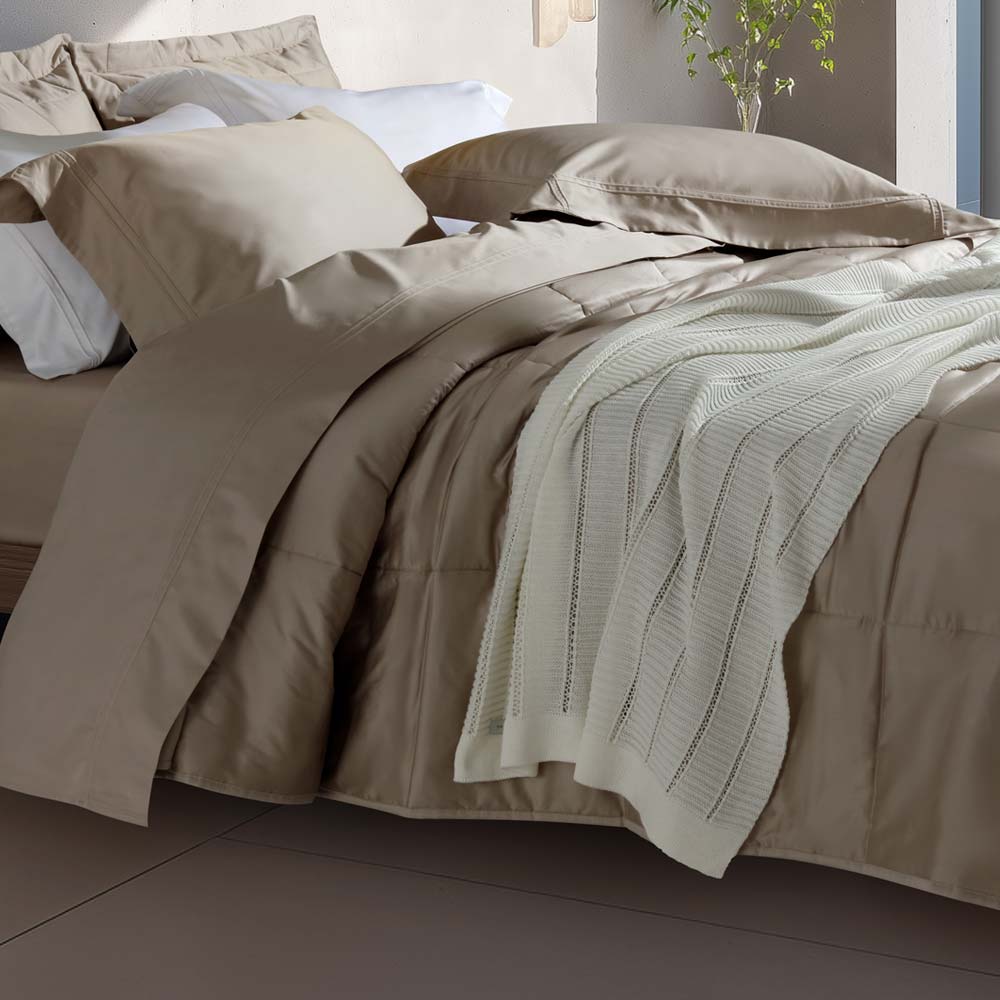 Confeccionada em tecido acetinado 100% algodão, Fio Egípcio, 300 fios. Um toque de conforto e sofisticação que o seu quarto merece. O modelo é inspirado nas linhas limpas e nas formas arquitetônicas das metrópoles modernas, capturando a essência do design atual, onde a funcionalidade encontra o luxo, proporcionando uma experiência única de conforto e estilo. Fronhas 3 abas com vivo em relevo. Cada peça da coleção foi cuidadosamente criada para atender às necessidades de quem valoriza o estilo e o conforto no ambiente. Com cores neutras e detalhes discretos, Minimalismo Urbano é uma expressão do estilo de vida atual, onde menos é mais e cada detalhe faz a diferença. Perfeito para vestir seus travesseiros! Foto meramente ilustrativa.