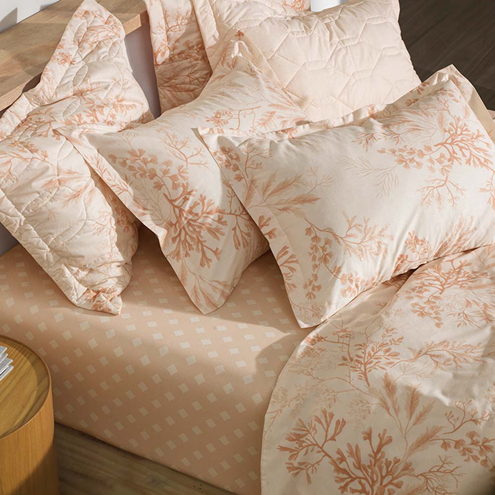 Confeccionado em tecido percal, 180 fios, 100% algodão, transferindo conforto com muita maciez, para suas noites relaxantes de sono. Coralina tem estampa delicada e sutil de ramos e galhos que criam uma atmosfera de tranquilidade e serenidade para o quarto. Seu toque macio e suave é capaz de evocar noites de sono tranquilizantes e revigorantes. Além disso, as fronhas têm 3 abas de 4cm que dão mais personalidade e elegância as peças. A coleção Afeto tem o objetivo de proporcionar composições que transmitam o prazer de viver no conforto diário. É a chance de se inspirar e criar seu próprio cenário afetuoso e colecionar memórias. Foto meramente ilustrativa.