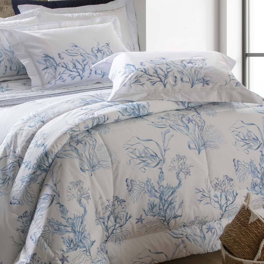 As fronhas da linha Vida Bela Kacyumara são confeccionados sobre a base exuberante do tecido de algodão egípcio naturalmente hipoalergênico e percal 200 fios com tratamento especial que confere um toque de seda e conta ainda com propriedade anti-pilling evitando que o tecido forme bolinhas. Dip mergulha na serenidade do fundo do mar, trazendo um fundo branco decorado com delicadas algas marinhas, complementadas por graciosos cavalosmarinhos. Com um toque refrescante e tranquilo, essa estampa é perfeita para criar um ambiente que inspira leveza e conexão com a natureza. Par de fronhas com abas. Essa coleção proporciona uma sensação suave ao toque, ideal para quem busca uma experiência de descanso confortável e agradável. Perfeita para seu travesseiro! Foto meramente ilustrativa.