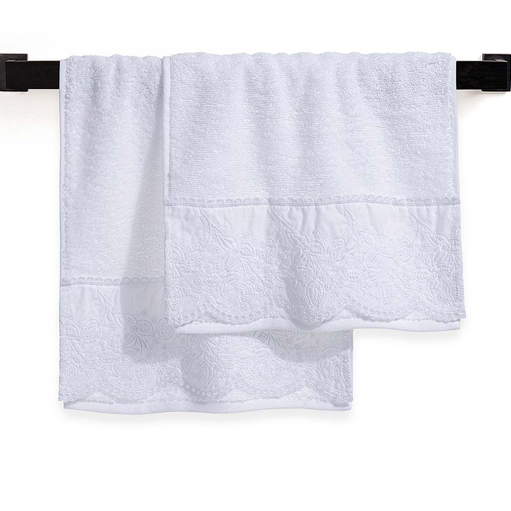 Confeccionado em 100% algodão, fio penteado de baixa torção, com tira bordada aplicada e gramatura de 500g/m². Toalhas pré-encolhidas, levam a tecnologia Cotone Speciale que proporciona uma ótima absorção e um excelente toque sensorial de plumas de algodão. A Trussardi modela suas toalhas com cuidado meticuloso, celebrando requinte e qualidade em cada detalhe. Transformando o cotidiano em arte, suas toalhas elevam o comum ao extraordinário. O algodão selecionado traz características incomparáveis ao produto. A combinação de fibras de alta resistência e tecnologia exclusiva proporcionam maciez sem igual, toque confortável, excelente absorção e volume, além de qualidade superior. Kit composto por toalhas de lavabo e rosto com tira bordada aplicada. Se encante com a beleza e qualidade que os produtos Trussardi oferecem! Foto meramente ilustrativa. Contém: 1 toalha de rosto 48x80cm 1 toalha de lavabo 30x50cm INSTRUÇÕES DE LAVAGEM TRUSSARDI • Lavar com temperatura máxima de 40°C; • Não alvejar; • Secagem em tambor com temperatura baixa; • Passar com temperatura máxima de 150°C; • Não limpar a seco. Dicas de conservação Catran: - Siga sempre as instruções de lavagem e conservação dispostas na etiqueta ou embalagem do produto. -30% -30%