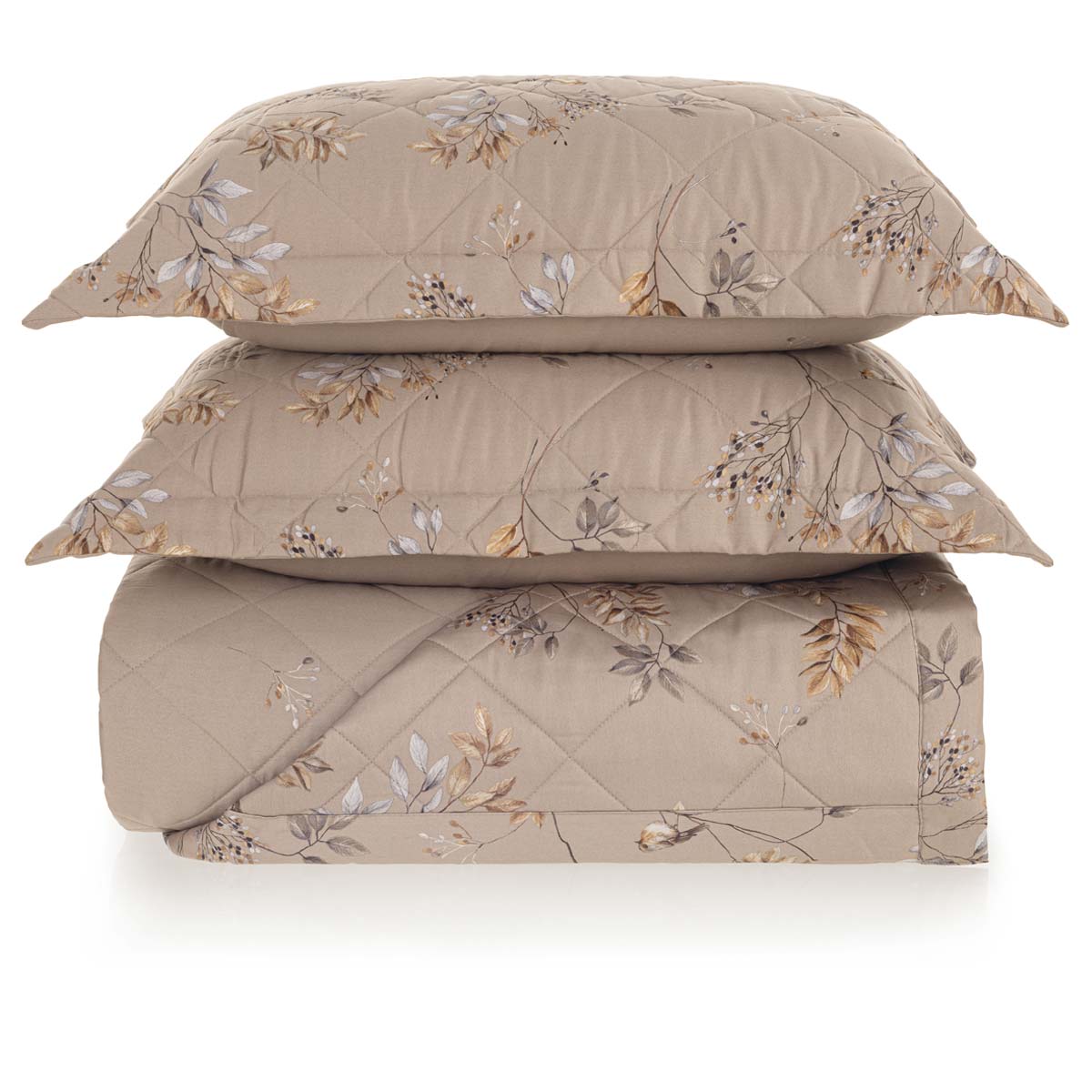 Confeccionada em tecido matelassado e mercerizado 100% algodão, cetim 200 fios com enchimento manta 100g/m². O loureiro era mais que uma árvore: era símbolo de glória, eternidade e proteção. Entre seus ramos sempre verdes, ainda hoje pousam os delicados pássaros típicos da região, trazendo consigo o canto suave das manhãs romanas. A estampa Aloro celebra essa natureza atemporal, onde o louro e os pássaros se encontram em perfeita harmonia. Colcha e porta-travesseiros estampados. Seu design versátil permite composições refinadas, adaptando-se com facilidade a diferentes propostas de decoração. A qualidade do algodão em cetim assegura durabilidade, conforto térmico e manutenção da maciez mesmo após o uso contínuo. Foto meramente ilustrativa.