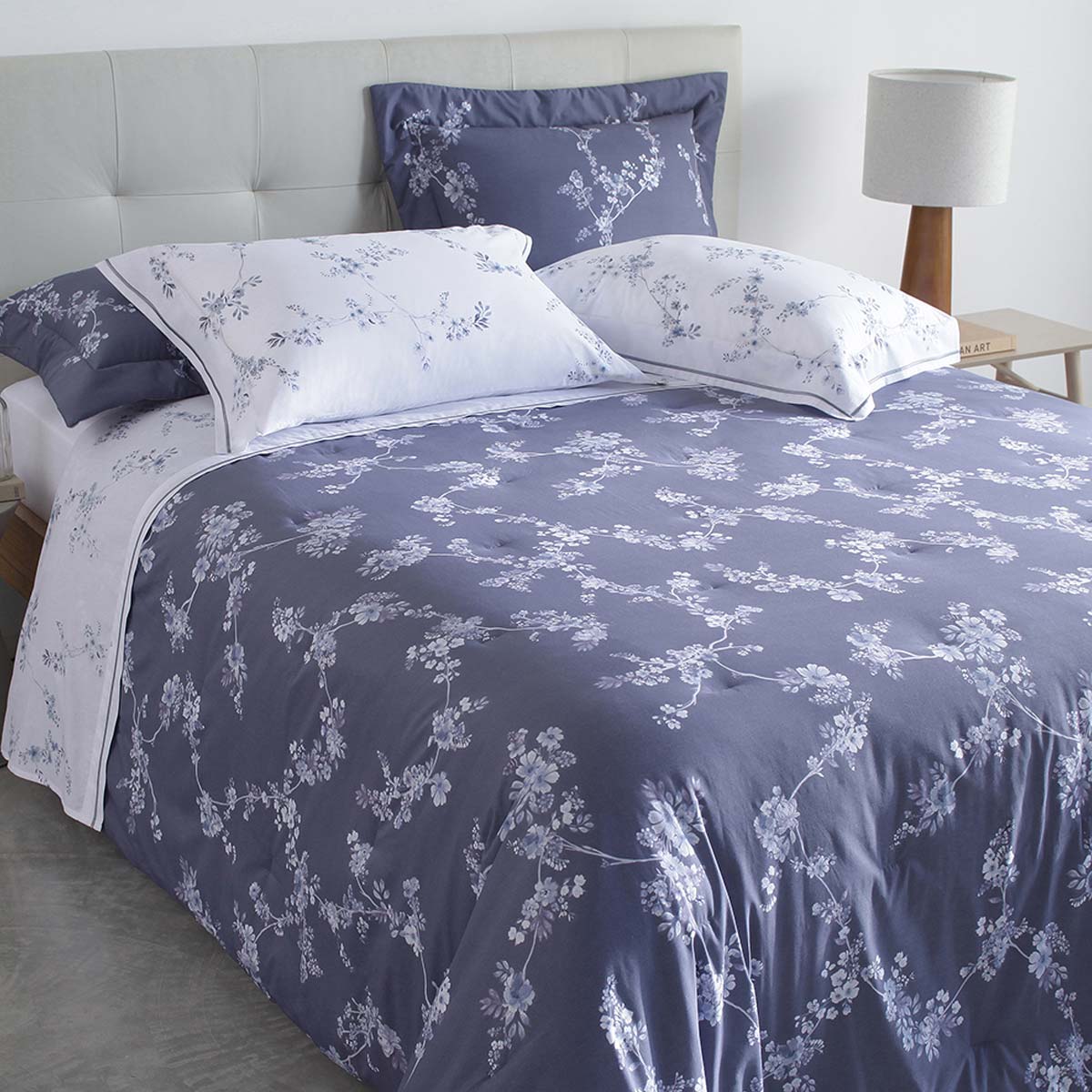 Confeccionada em aconchegante tecido Grand Percalle 200 fios de puro algodão com fibras longas com trama diferenciada construída a partir de finos fios sedosos e enchimento 100% poliéster com gramatura de 180g/m². Símbolo de pureza e prosperidade, flores de laranjeiras tornam a Coleção Louise Gran Percalle repleta de vivacidade e boas energias. Em requintado azul profundo, o kit colcha matelassado possui presença marcante, com florais em nuances. Em Gran Percalle 200 fios de puro algodão com fibras longas, o modelo possui excepcional maciez, agregando mais conforto e bem-estar para os momentos de descanso. A Buddemeyer é referência em qualidade e estilo! Foto meramente ilustrativa.