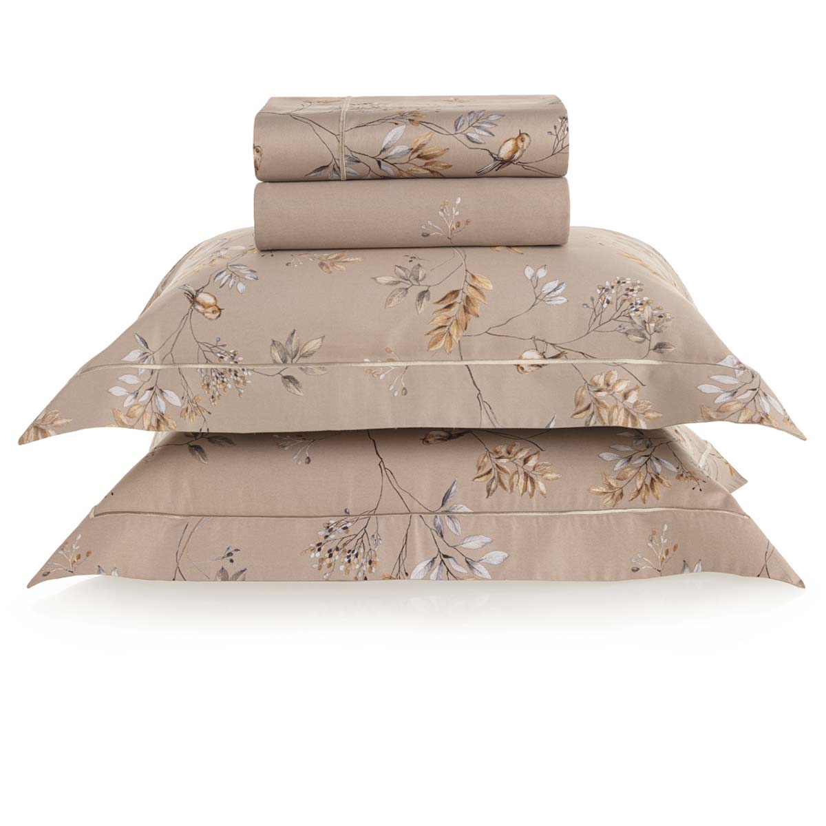 Confeccionado em tecido sanforizado e mercerizado 100% algodão, Cetim 200 fios. O loureiro era mais que uma árvore: era símbolo de glória, eternidade e proteção. Entre seus ramos sempre verdes, ainda hoje pousam os delicados pássaros típicos da região, trazendo consigo o canto suave das manhãs romanas. A estampa Aloro celebra essa natureza atemporal, onde o louro e os pássaros se encontram em perfeita harmonia. O jogo de cama Alore 4 peças é composto por sobre lençol dobra feita estampado com acabamento em ponto royal, lençol estampado com elástico para melhor encaixe no colchão e fronhas 3 abas com acabamento em ponto royal. Perfeito para sua cama! Foto meramente ilustrativa. Contém: 1 lençol de cima 220x260cm 1 lençol com elástico 140x190x40cm 2 fronhas 50x70cm INSTRUÇÕES DE LAVAGEM TRUSSARDI • Lavar com temperatura máxima de 40°C; • Não alvejar; • Não secar em tambor; • Secagem vertical; • Passar com temperatura máxima 110°C; • Não limpar a seco. Dicas de conservação Catran: - Siga sempre as instruções de lavagem e conservação dispostas na etiqueta ou embalagem do produto. Jogo de Cama Casal 200 Fios Aloro - Trussardi De R$ 1.099,90 Por R$ 1.044,91 vista com 5% de desconto no boleto/pix R$ 1.099,90no carto em at 10x de R$ 109,99
