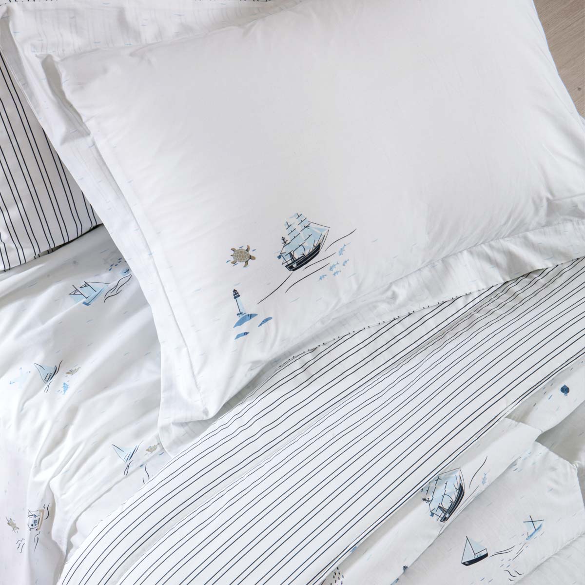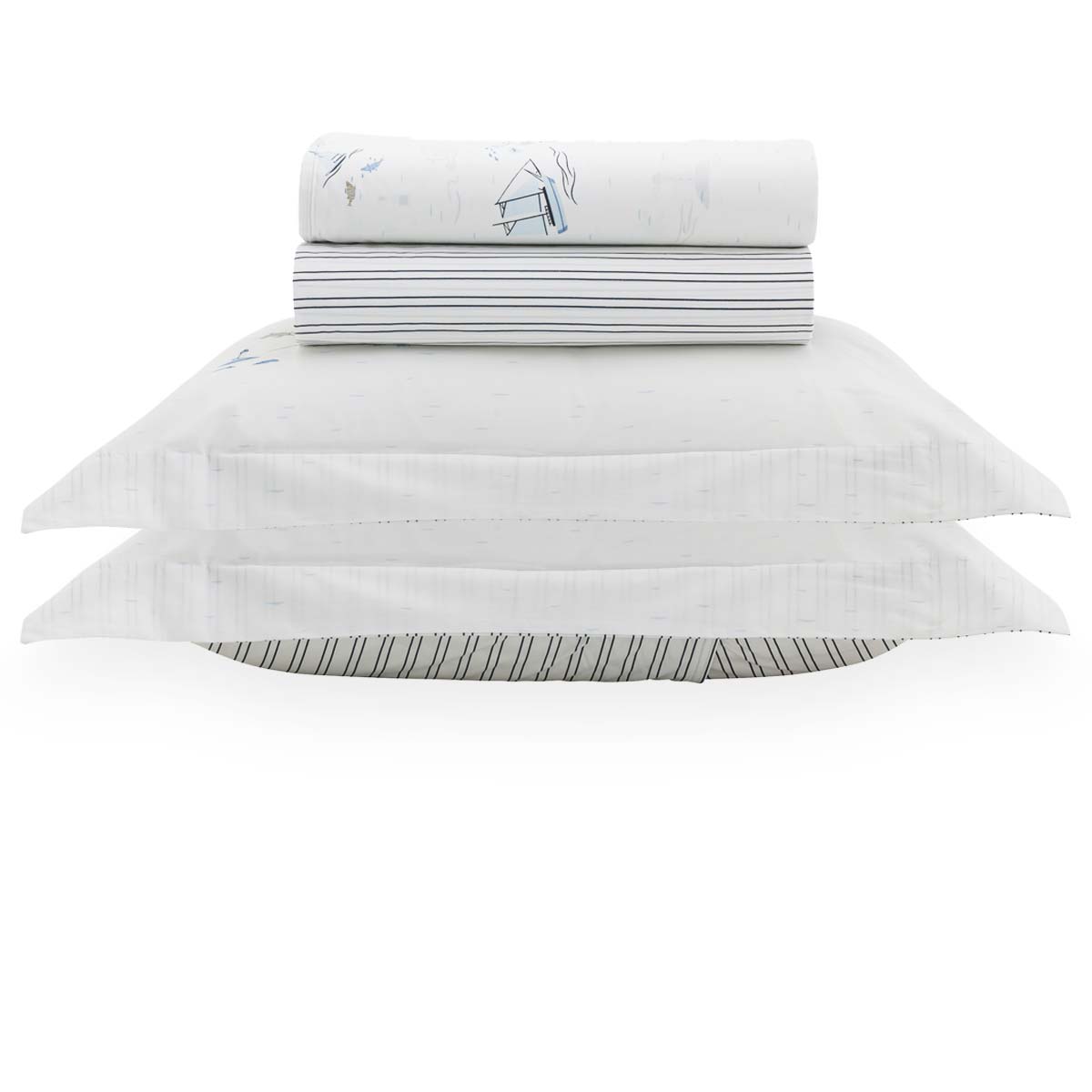 Os lençóis da linha Vida Bela Kacyumara são confeccionados sobre a base exuberante do tecido de algodão egípcio naturalmente hipoalergênico e percal 200 fios com tratamento especial que confere um toque de seda e conta ainda com propriedade anti-pilling evitando que o tecido forme bolinhas. Com uma leitura clara e serena, Wind explora o universo náutico através de barcos e navios. A distribuição leve dos elementos e o contraste suave entre os tons reforçam a sensação de movimento e tranquilidade. Seu jogo de lençóis 4 peças é composto por lençol de cima com dobra feita, lençol de elástico coordenando com o lençol de cima e fronhas com abas. Essa coleção proporciona uma sensação suave ao toque, ideal para quem busca uma experiência de descanso confortável e agradável. Perfeito para vestir sua cama! Foto meramente ilustrativa. Contém: 1 lençol de cima 200x240cm 1 lençol com elástico 140x190x30cm 2 fronhas com abas 50x70cm INSTRUÇÕES DE LAVAGEM KACYUMARA • Lavar com temperatura máxima de 40°C; • Não usar alvejante à base de cloro; • Permitido secar em tambor com temperatura mínima; Secar pendurado e à sombra; • Passar com temperatura máxima de 110°; • Não limpar a seco; • Permitido lavagem a úmido em processo normal. Dicas de conservação Catran: - Siga as instruções de lavagem e conservação dispostas na etiqueta ou embalagem do produto. Jogo de Cama Casal 200 Fios Wind - Kacyumara R$ 439,00no cartão em até 10x de R$ 43,90
