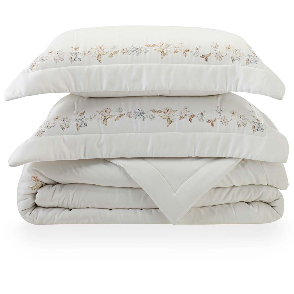 Confeccionada em fibra de bambú, 400 fios percal e enchimento 100% poliéster. A linha Bali foi desenvolvida com tecido 100% viscose feito a partir da polpa do bambú com alta densidade de fios. Possui naturalmente propriedades hipoalergênicas, bactericidas e antiácaros inibindo odores; se mantém fresco no verão e aquecido no inverno e conta com o inigualável toque de cetim, muito macio e confortável. A fibra de bambu se renova naturalmente, não utiliza agrotóxicos ou pesticidas em sua produção, não retém umidade e é consciente e sustentável. Bali Gardene carrega uma proposta leve e poética, sua composição em florais de tons pastéis envolve com delicadeza e imprime um ótimo caimento na cama. Colcha de toque suave e acetinado, além de ser antipilling. O kit é composto por colcha com acabamento bordado ao logo de sua borda e nas abas dos porta-travesseiros. Perfeita para adornar e vestir sua cama! Foto meramente ilustrativa. Contém: 1 colcha 280x260cm 2 pota-travesseiros 50x70cm INSTRUÇÕES DE LAVAGEM KACYUMARA • Lavar em temperatura máxima 30°C em processo muito suave; • Não alvejar ou branquear; • Não secar em tambor; Secar pendurado, à sombra e sem torcer; • Passar com temperatura máxima de 110° sem vapor; • Não limpar a seco; • Lavagem a úmido em processo suave. Dicas de conservação Catran: - Siga sempre as instruções de lavagem e conservação dispostas na etiqueta ou embalagem do produto. -36%