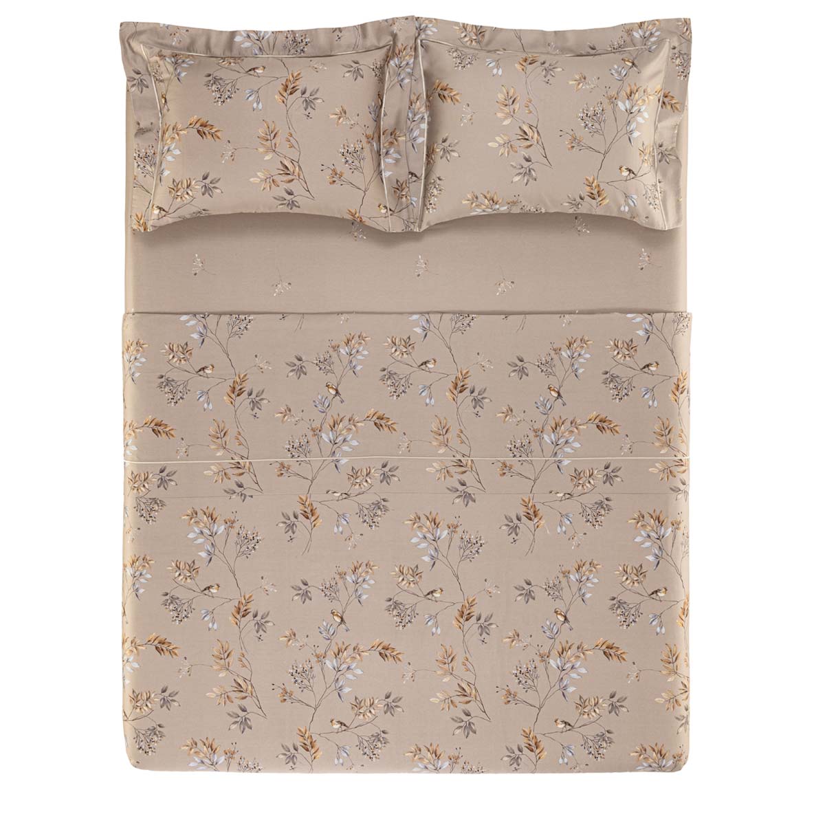 Confeccionado em tecido sanforizado e mercerizado 100% algodão, Cetim 200 fios. O loureiro era mais que uma árvore: era símbolo de glória, eternidade e proteção. Entre seus ramos sempre verdes, ainda hoje pousam os delicados pássaros típicos da região, trazendo consigo o canto suave das manhãs romanas. A estampa Aloro celebra essa natureza atemporal, onde o louro e os pássaros se encontram em perfeita harmonia. O jogo de cama Alore 4 peças é composto por sobre lençol dobra feita estampado com acabamento em ponto royal, lençol estampado com elástico para melhor encaixe no colchão e fronhas 3 abas com acabamento em ponto royal. Perfeito para sua cama! Foto meramente ilustrativa.