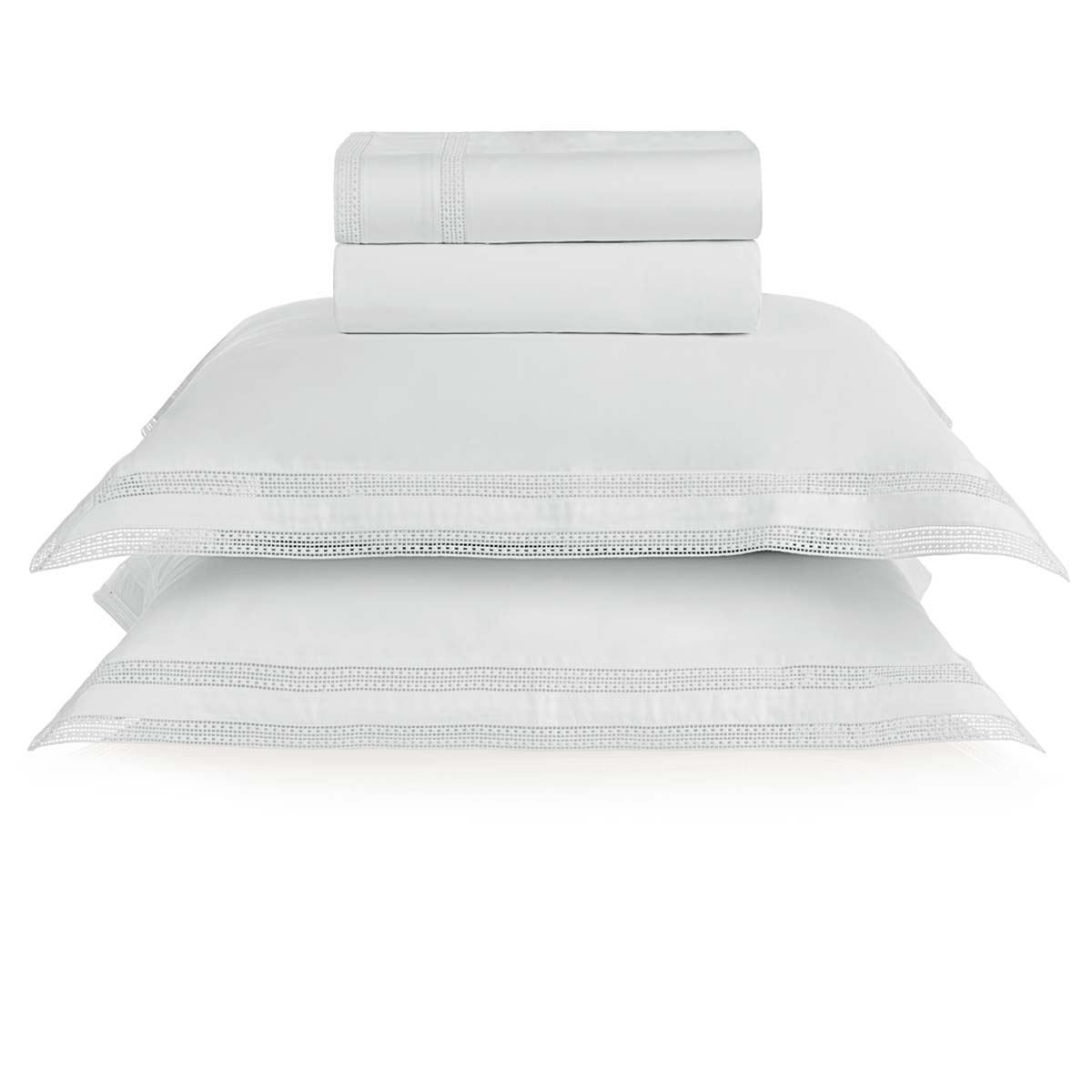 Confeccionado em tecido sanforizado e mercerizado 100% Algodão Egípcio, cetim 300 fios. O jogo de cama Romana é uma homenagem à grandiosidade da sociedade que deu origem à Cidade Eterna. Seus elementos traduzem, em cada detalhe, os momentos marcantes que eternizaram Roma em um símbolo de cultura, arte e imponência. Como diz o provérbio, “Todos os caminhos levam a Roma”, aqui eles se revelam nos delicados traços quadriculados que adornam o acabamento da peça, remetendo às vias e estruturas geométricas da cidade clássica. Com um design de presença marcante e uma confecção refinada, Romana convida a contemplação do tempo e do descanso, oferecendo noites de sono com qualidade, beleza e um toque da história. O kit consiste em sobrelençol dobra feita com entremeio bordado, lençol com elástico e fronhas 4 abas e entremeio bordado aplicado. A linha Cetim possui estrutura de entrelaçamento dos fios mais fechada, o que retém melhor o calor e torna-se ideal para os dias mais frios. Encanta pelo toque de brilho e por seu caimento suave e macio. Perfeito para vestir sua cama! Foto meramente ilustrativa.