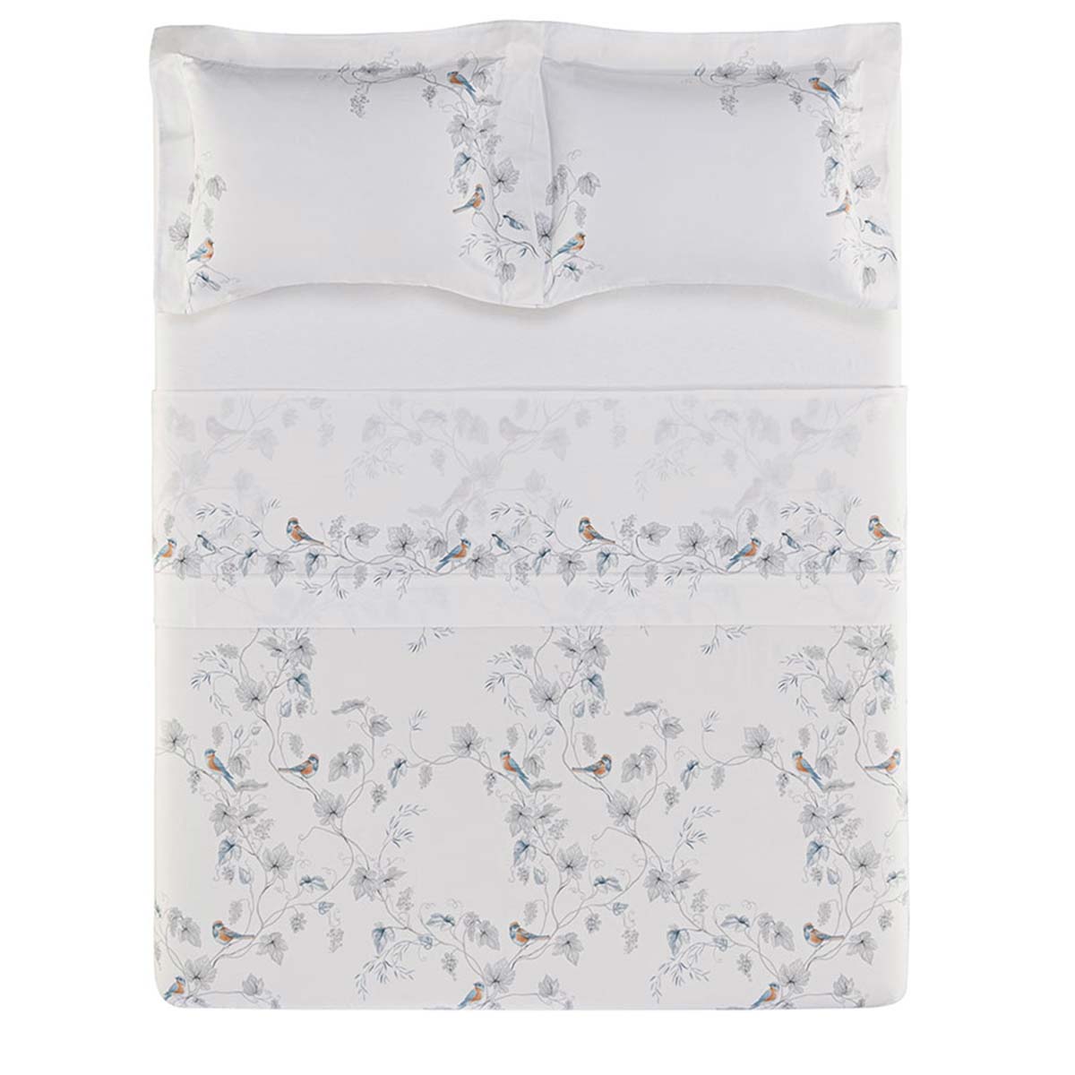 De toque supremo com experiência sensorial do cetim 300 fios, produzido com 100% algodão egípcio de fibras longas. Esse tecido sedoso, de toque extremamente macio e com cintilância natural, por conta do entrelaçamento dos fios; além disso, sua estrutura maleável proporciona um caimento perfeito na cama. O algodão egípcio tem propriedades hipoalergênicas e altamente respiráveis, que regulam a temperatura corporal e proporcionam uma noite de sono perfeita. Suas fibras longas impedem a formação de bolinhas e garantem fios mais finos, criando um tecido muito mais suave e confortável. O jogo de cama Videira nos transporta aos vinhedos, com uvas, parreiras, pássaros e paisagens inspiradoras. As fronhas 3 abas de 7cm com acabamento em ponto ajour recebem uma estampa dimensionada com ricos detalhes que emolduram os travesseiros, enquanto o sobre lençol apresenta uma vira dimensionada na cor branca e estampa de folhas e pássaros em tons de cinza, azul e laranja que enriquece a composição. O lençol com elástico traz uma estampa de linhas assimétricas em tons claros, que harmoniza com facilidade. Com caimento perfeito do cetim, Videira une a naturalidade do desenho feito à mão à sofisticação de um design único. Foto meramente ilustrativa. Contém: 1 lençol de cima 240x260cm 1 lençol ajustável 160x200x40cm 2 fronhas 50x70cm INSTRUÇÕES DE LAVAGEM KARSTEN • Lavar com temperatura máxima de 40°C; • Não alvejar; • Secar em tambor com temperatura máxima de 60ºC; • Passar com temperatura máxima de 150ºC; • Não limpar a seco; Dicas de conservação Catran: - Siga sempre as instruções de lavagem e conservação dispostas na etiqueta ou embalagem do produto. -20%
