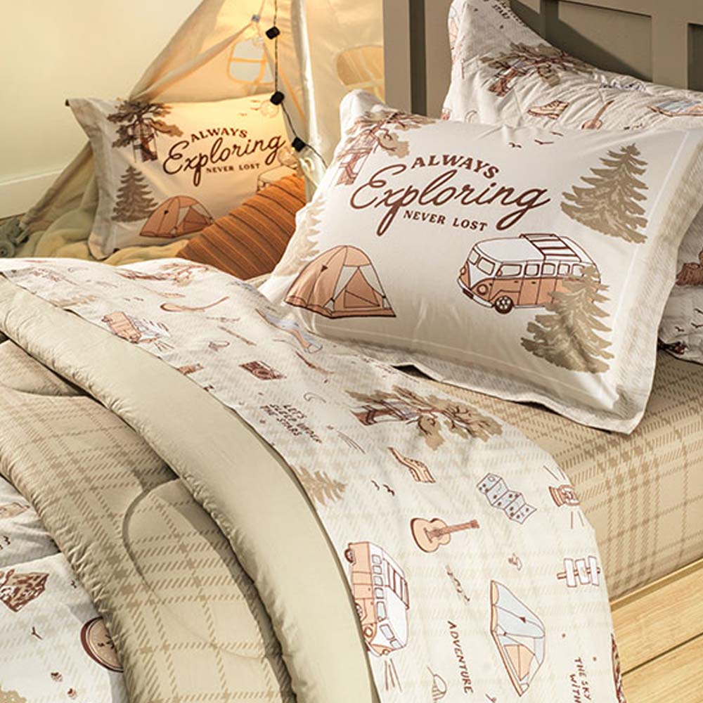 O toque Soft da Karsten abraça você com o mais puro algodão 200 fios feitos com fio penteado 100% brasileiro. Mais encorpado e macio, reduz o atrito com a pele, sendo altamente respirável e ajudando a regular a temperatura corporal. Com ação antibolinhas e hipoalergênico, oferece durabilidade e cuidado para peles sensíveis. Transforme o quarto das crianças em um espaço repleto de conforto e aventura com o jogo de cama infantil Aventura. Composto por um sobre lençol com estampa rotativa de figuras de acampamento com dobra feita, um lençol com elástico com estampa xadrez marrom e fronha com estampa dimensionada com figuras de acampamento e 4 abas de 4 cm, o conjunto se destaca pela sua praticidade, já que a estampa em tons de marrom combina facilmente com peças da mesma linha ou tonalidade. Um item perfeito para unir qualidade e estilo ao universo da imaginação infantil. Perfeito para quem busca noites tranquilas e um toque de sofisticação no dia a dia. Foto meramente ilustrativa. Contém: 1 lençol de cima 180x250cm 1 lençol ajustável 100x200x35cm 1 fronha 50x70cm INSTRUÇÕES DE LAVAGEM KARSTEN • Lavação a 60°C; • Proibido alvejar; • Secar em tambor com temperatura maxima de 60°C; • Ferro de passar com temperatura maxima de 150°C; • Proibido lavar a seco. Observações Karsten Pode haver pequena variação de cor, de acordo com a configuração e modelo do monitor ou do aparelho celular. Consultar a cor nas especificações técnicas do produto. Dicas de conservação Catran: - Siga sempre as instruções de lavagem e conservação dispostas na etiqueta ou embalagem do produto. Jogo de Cama Solteiro 200 Fios Aventura - Karsten De R$ 329,00 Por R$ 312,55à vista com 5% de desconto no boleto/pix R$ 329,00no cartão em até 10x de R$ 32,90