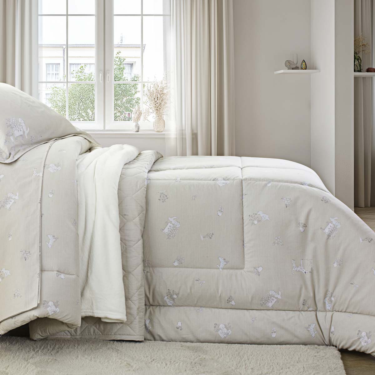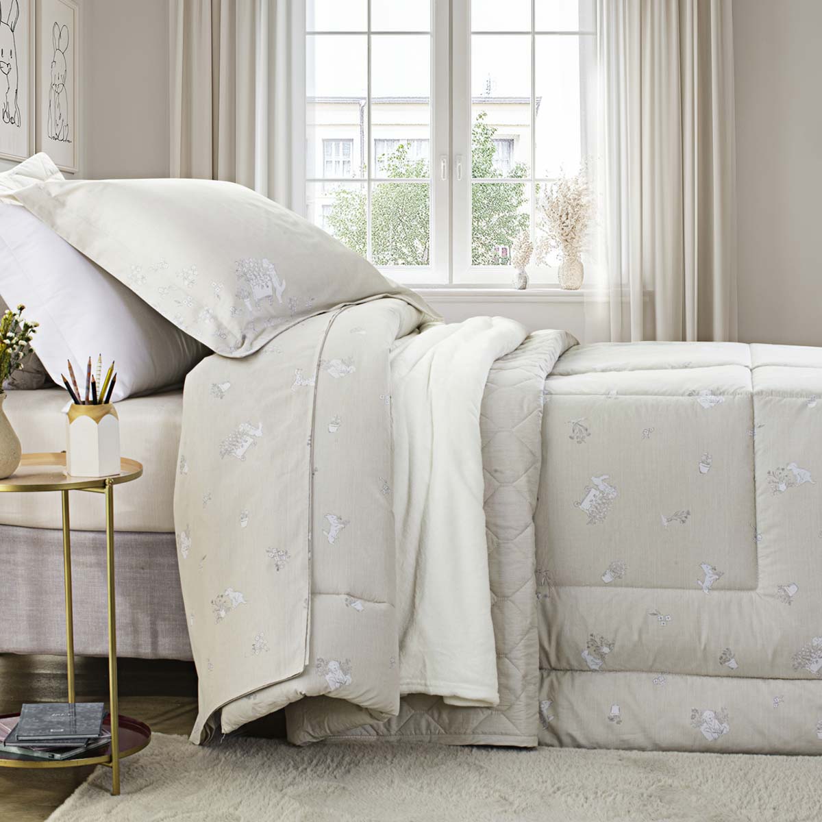 Os lençóis da linha Vida Bela Kacyumara são confeccionados sobre a base exuberante do tecido de algodão egípcio naturalmente hipoalergênico e percal 200 fios com tratamento especial que confere um toque de seda e conta ainda com propriedade anti-pilling evitando que o tecido forme bolinhas. Nina traz doçura e delicadeza em sua composição de cachorrinhos. Toda a graça dos pets envolvendo seu enxoval, uma estampa belíssima e suave que traduz um clima aconchegante no quarto. Seu jogo de lençóis 3 peças é composto por lençol de cima com dobra feita, lençol de elástico coordenando com o lençol de cima e fronha com abas. Essa coleção proporciona uma sensação suave ao toque, ideal para quem busca uma experiência de descanso confortável e agradável. Perfeito para vestir sua cama! Foto meramente ilustrativa. Contém: 1 lençol de cima 160x240cm 1 lençol com elástico 90x190x30cm 1 fronha com abas 50x70cm INSTRUÇÕES DE LAVAGEM KACYUMARA • Lavar com temperatura máxima de 40°C; • Não usar alvejante à base de cloro; • Permitido secar em tambor com temperatura mínima; Secar pendurado e à sombra; • Passar com temperatura máxima de 110°; • Não limpar a seco; • Permitido lavagem a úmido em processo normal. Dicas de conservação Catran: - Siga as instruções de lavagem e conservação dispostas na etiqueta ou embalagem do produto. Jogo de Cama Solteiro 200 Fios Nina - Kacyumara R$ 319,00no cartão em até 10x de R$ 31,90