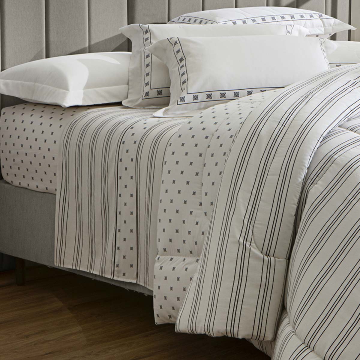 Os lençóis da linha Satinée da Kacyumara são produzidos sobre o algodão egípcio naturalmente hipoalergênico, com tratamento especial que confere um toque de seda e estampas que permeiam das clássicas às mais contemporâneas, a linha conta ainda com o percal 300 fios acetinado com tratamento antipilling conferindo mais durabilidade e sem formação e bolinhas. Em estética minimalista, Livero traz uma proposta mais moderna, compondo com o estilo gravataria, essa estampa desenha um movimento que eleva o quarto. Seu jogo de lençóis 3 peças é composto por lençol de cima com vira, pala dupla com acabamento em viés, lençol de elástico cordenado com o lençol superior e fronha com abas e estampa exclusiva dimensionada. Perfeito para vestir sua cama! Foto meramente ilustrativa. Contém: 1 lençol de cima 160x260cm 1 lençol com elástico 90x190x30cm 1 fronha com abas 50x70cm INSTRUÇÕES DE LAVAGEM KACYUMARA • Lavar à máquina (modo suave, sem excesso de peso); • Não misturar cores (principalmente escuras); • Não deixar de molho, não usar cloro, não lavar a seco; • Usar sabão neutro e enxaguar bem; • Secar à sombra, logo após a lavagem; • Não secar em tambor, não passar. Dicas de conservação Catran: - Siga as instruções de lavagem e conservação dispostas na etiqueta ou embalagem do produto. Jogo de Cama Solteiro 300 Fios Livero - Kacyumara De R$ 465,00Por R$ 339,00 vista R$ 339,00no carto em at 10x de R$ 33,90