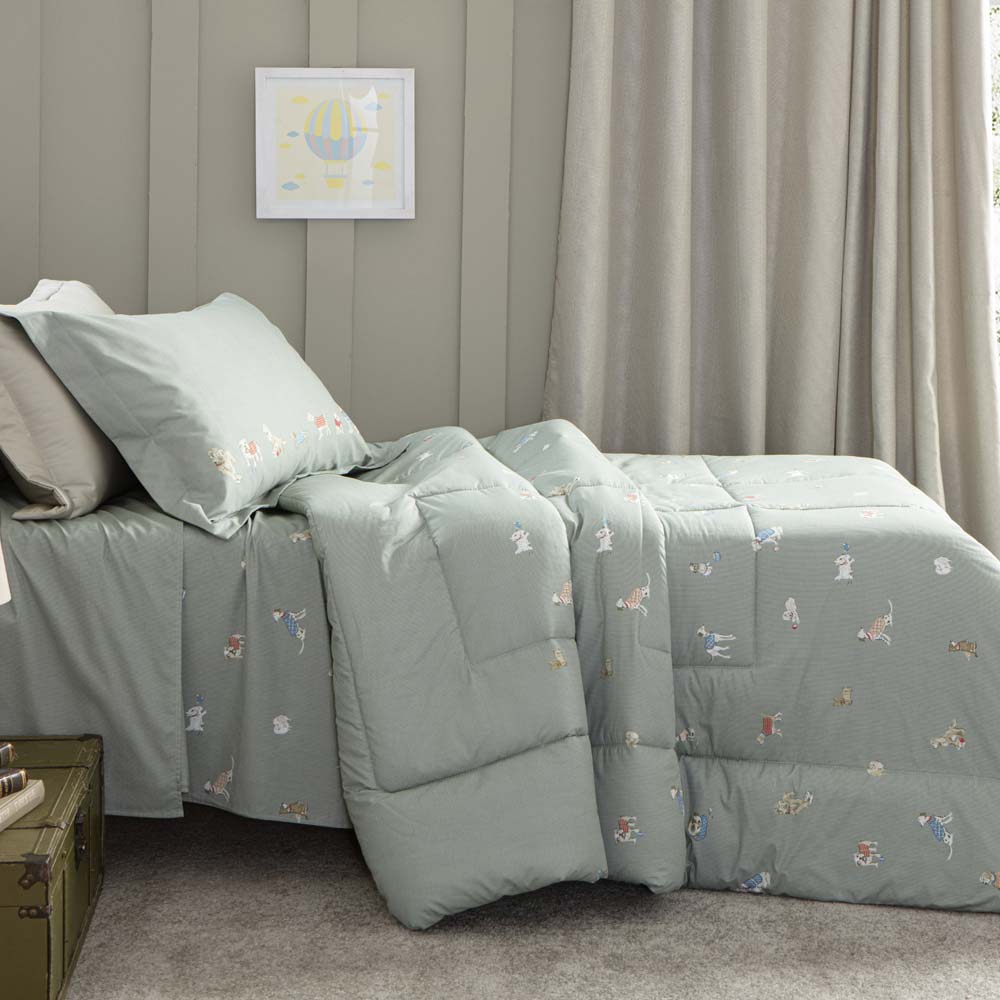 As colchas da linha Vida Bela da Kacyumara são confeccionadas sobre a base exuberante do tecido de algodão egípcio naturalmente hipoalergênico, percal 200 fios e enchimento 100% poliéster com gramatura de 80g/m². Leva tratamento especial que confere um toque de seda e conta ainda com propriedade anti-pilling evitando que o tecido forme bolinhas. Com um ar despojado, Toby imprime personalidade na coleção, sua composição de cachorrinhos oferece um belíssimo visual, conferindo um ótimo movimento na cama. Seu kit colcha 2 peças é composto por cobre leito dupla face matelado com acabamento em viés e porta-travesseiro com abas matelado com estampa localizada. Perfeita para deixar a cama muito mais bonita e arrumada! Foto meramente ilustrativa. Contém: 1 colcha 180x240cm 1 porta-travesseiros 50x70cm INSTRUÇÕES DE LAVAGEM KACYUMARA • Lavar com temperatura máxima de 40°C; • Não usar alvejante à base de cloro; • Permitido secar em tambor com temperatura mínima; Secar pendurado e à sombra; • Passar com temperatura máxima de 110°; • Não limpar a seco; • Lavagem a úmido em processo normal. Dicas de conservação Catran: - Siga as instruções de lavagem e conservação dispostas na etiqueta ou embalagem do produto. Colcha Solteiro 200 Fios Toby - Kacyumara De R$ 449,00 Por R$ 426,55à vista com 5% de desconto no boleto/pix R$ 449,00no cartão em até 10x de R$ 44,90