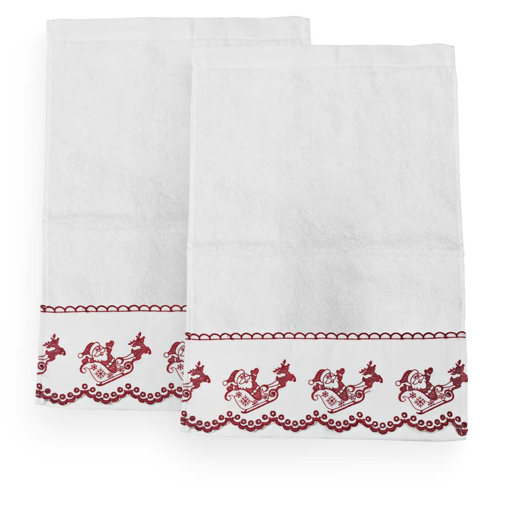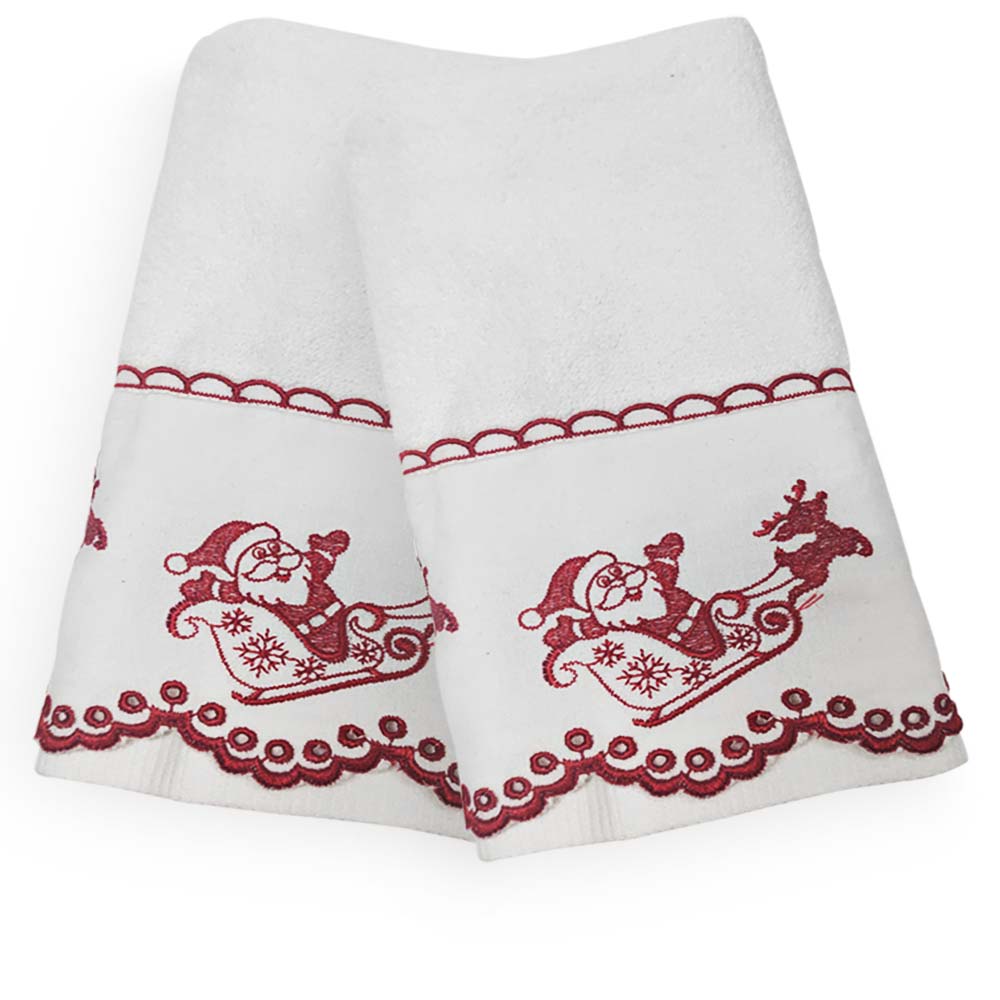 Produzido em 100% algodão e gramatura de 480g/m². Toalhas pré-lavadas e pré-encolhidas, o que amplia a maciez, resistência e poder de absorção, Além de ajudar a preservar o aspecto de novo e a aumentar a durabilidade. Sua barra bordada estampa O Bom Velhinho já em plena atividade em seu trenó puxado pela famosa Rena. Um toque de conforto e sofisticação que o seu banheiro merece na época mais acolhedora do ano: O Natal! É a opção perfeita para quem busca qualidade e requinte. Foto meramente ilustrativa.