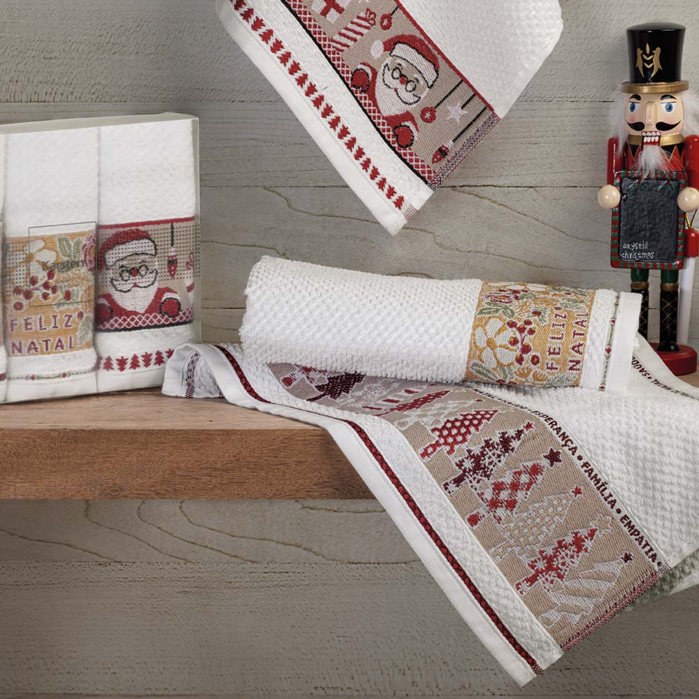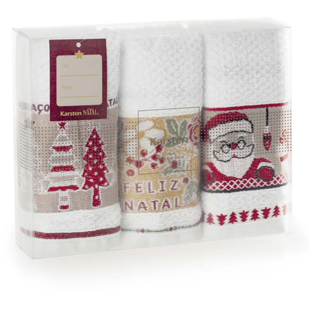 Produzido em 91% algodão e 9% poliéster. O kit de panos de copa Festivos Karsten, é um lindo kit preparado com carinho para presentear. Possui 3 toalhas bordadas com temas natalinos para acompanhar na época mais linda do ano com um material de ótima absorção e durabilidade superior. Conheça a linha de natal com toalhas de lavabo e guardanapos exclusivos e renove seu lar com charme e sofisticação. Mais do que panos de copa, são decorações que vão colorir sua cozinha com bordados delicados para essa data especial de confraternização em família. Além de lindos, os panos são de excelente absorção e qualidade superior. Foto meramente ilustrativa.